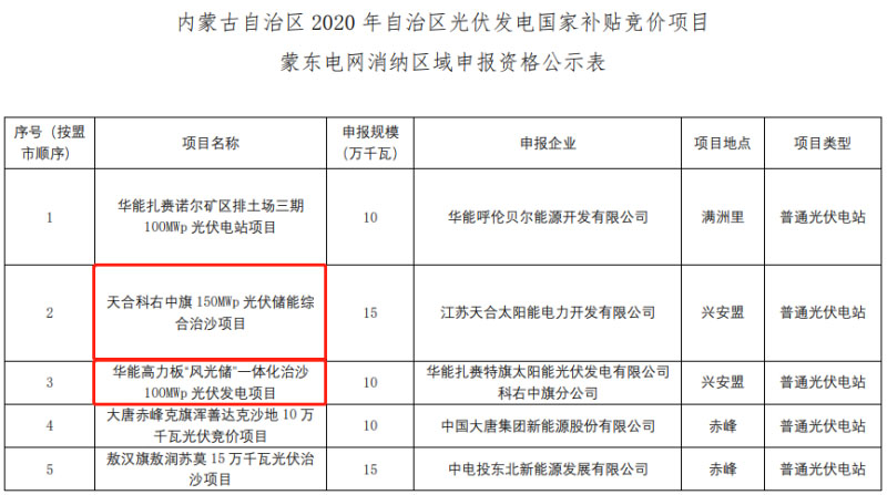 附件:內(nèi)蒙古自治區(qū)2020年自治區(qū)光伏發(fā)電國家補貼競價項目申報資格公示表