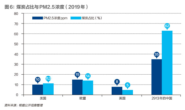 2035年和2050年現(xiàn)代化國家初步建成和全面建成之后,中國的年均PM2.5的濃度也應該至少降至25ppm和15ppm,才能與國家的發(fā)展水平、人民的愿望相稱,屆時煤炭消費的占比也必須降低到35%和15%以下。