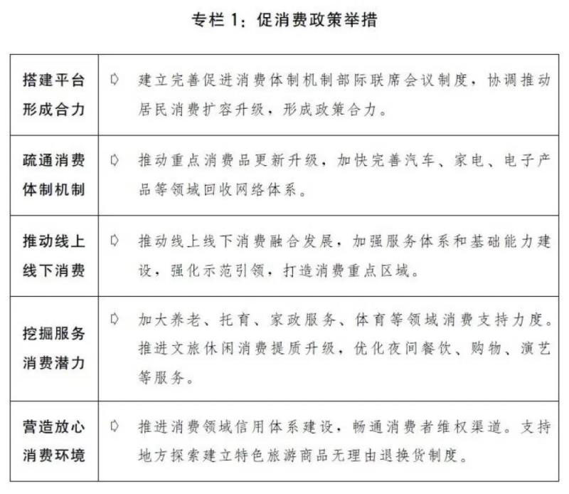 一是釋放消費(fèi)潛力。在防控措施到位前提下,有序推動(dòng)各類商場、市場復(fù)市復(fù)業(yè),促進(jìn)線下消費(fèi)加速回補(bǔ)。培育壯大線上消費(fèi),推進(jìn)互聯(lián)網(wǎng)和各類消費(fèi)業(yè)態(tài)深度融合。促進(jìn)教育、醫(yī)療、養(yǎng)老、家政、文旅、體育等服務(wù)消費(fèi)線上線下融合發(fā)展,進(jìn)一步支持依托互聯(lián)網(wǎng)的外賣配送、網(wǎng)約車等新業(yè)態(tài)。發(fā)展大健康產(chǎn)業(yè)。擴(kuò)大電商、快遞進(jìn)農(nóng)村覆蓋面,暢通工業(yè)品下鄉(xiāng)、農(nóng)產(chǎn)品進(jìn)城渠道。加速5G網(wǎng)絡(luò)建設(shè)和場景應(yīng)用,完善新型基礎(chǔ)設(shè)施布局,推動(dòng)超高清視頻、虛擬現(xiàn)實(shí)等新興消費(fèi)。積極擴(kuò)大汽車消費(fèi),允許進(jìn)口尾氣排放實(shí)測結(jié)果達(dá)到國六標(biāo)準(zhǔn)的平行進(jìn)口汽車。對京津冀等重點(diǎn)地區(qū)淘汰國三及以下排放標(biāo)準(zhǔn)柴油貨車給予適當(dāng)獎(jiǎng)補(bǔ)。加大汽車、綠色智能家電等消費(fèi)金融支持。鼓勵(lì)有條件的地區(qū)實(shí)施家電以舊換新補(bǔ)貼政策。加快廢舊家電回收體系建設(shè)。擴(kuò)大智能產(chǎn)品、定制化產(chǎn)品和綠色產(chǎn)品供給,促進(jìn)綠色消費(fèi)發(fā)展。培育建設(shè)國際消費(fèi)中心城市,因地制宜形成若干區(qū)域消費(fèi)中心。積極發(fā)展“智慧商圈”,加快建設(shè)新型文旅商業(yè)消費(fèi)聚集區(qū)。加快恢復(fù)鄉(xiāng)村旅游和休閑農(nóng)業(yè)。鼓勵(lì)夜間經(jīng)濟(jì)發(fā)展。有序放寬低空空域限制,加快通用航空網(wǎng)絡(luò)建設(shè),推動(dòng)通用航空發(fā)展。加強(qiáng)國家物流樞紐、國家骨干冷鏈物流基地和商品流通網(wǎng)絡(luò)建設(shè),推動(dòng)冷鏈物流、智慧物流、國際物流、供應(yīng)鏈發(fā)展。推進(jìn)電子商務(wù)與快遞物流協(xié)同發(fā)展。深入推進(jìn)步行街改造提升。強(qiáng)化消費(fèi)信用體系建設(shè),大力整治偽劣商品、侵權(quán)仿冒等問題,加大農(nóng)村商品流通市場秩序監(jiān)管力度,健全消費(fèi)維權(quán)法律制度和政策體系,營造安全放心消費(fèi)環(huán)境。