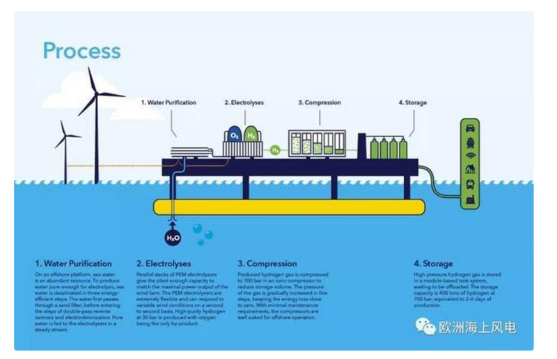 項目名稱為NortH2,小編理解為North+H2,即北海的制氫項目。該項目計劃到2030年在北海建成3-4GW的海上風(fēng)力發(fā)電能力,完全用于制造綠色氫氣,并在荷蘭北部沿岸的埃姆斯哈文或者近海區(qū)域建造一座大型電解制氫站。項目預(yù)計在2027年實現(xiàn)首次送電,并計劃到2040年在區(qū)域達成10GW海上風(fēng)電裝機、年產(chǎn)80萬噸綠色氫氣的目標,項目規(guī)??胺Q全球第一。