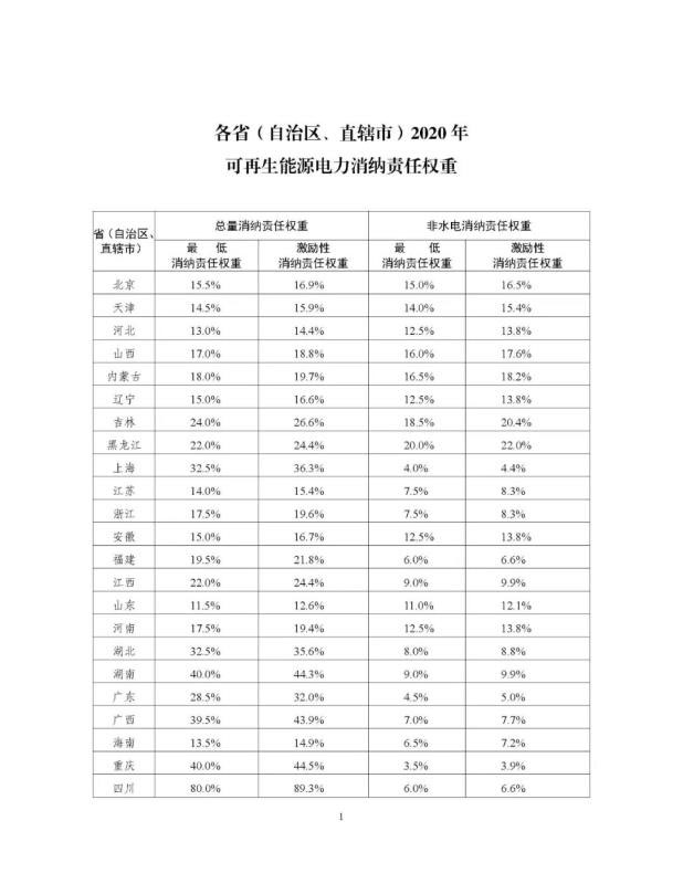 根據(jù)《國家發(fā)展改革委 國家能源局關(guān)于建立健全可再生能源電力消納保障機(jī)制的通知》(發(fā)改能源〔2019〕807號(hào)),在各地測算的基礎(chǔ)上,我們統(tǒng)籌提出了各省級(jí)行政區(qū)域2020年可再生能源電力消納責(zé)任權(quán)重,現(xiàn)印發(fā)你們,請認(rèn)真組織落實(shí)。