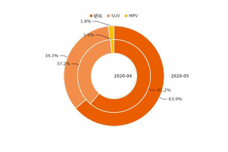 不同特征的用戶,其汽車消費偏好存在一定差異。通過分析用戶意向數(shù)據(jù),可以看到,女性用戶比男性用戶,對于轎車的偏好更強,在5月女性用戶來源的購車意向數(shù)據(jù)中,轎車占比為67.4%,比男性轎車購車意向占比高3.6個百分點。相反,男性用戶更偏好空間大、外形硬朗的車型,男性SUV購車意向占比比女性高2.8個百分點。與上月相比,女性用戶轎車、MPV購車意向占比有所下滑,而SUV購車意向占比存在一定上漲;男性用戶SUV購車意向占比下跌,而轎車、MPV意向份額有所增加。