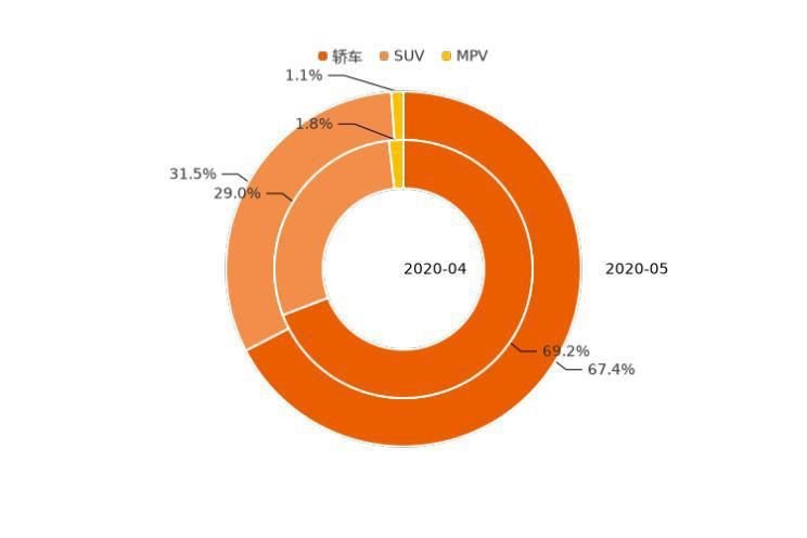 5月,新能源車中轎車、SUV、MPV用戶購車意向占比分別為63.0%、35.3%、1.7%。轎車用戶意向占比相較上月增加0.8個百分點,份額開始轉(zhuǎn)跌為升。SUV用戶意向占比開始回落,環(huán)比降低0.9個百分點。MPV用戶意向占比5月環(huán)比保持穩(wěn)定不變,意向占比仍較低。整體來看,用戶對新能源轎車意向較高。一方面,純電動SUV相對更大更重的車身,會影響其續(xù)航里程,同時續(xù)航里程及充電設施的限制,也使純電動SUV不適合長途旅行,無法發(fā)揮車型自身的優(yōu)勢;另一方面,插電式混合動力SUV,也隨SUV市場的低迷而下滑。