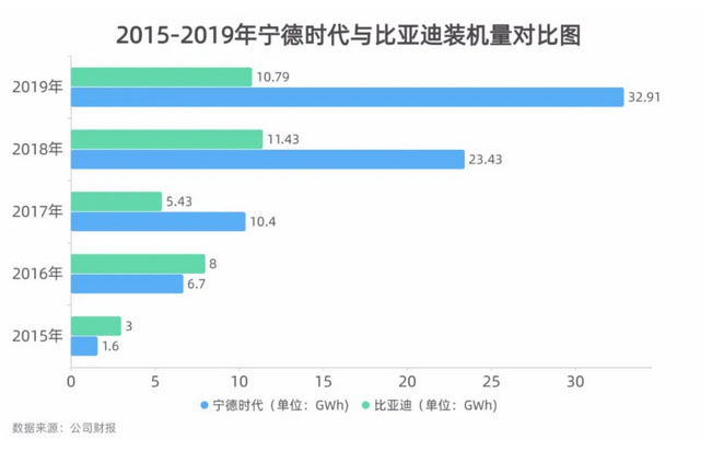 但曾毓群沒有選擇乘勝追擊,而是將精力集中在先行崛起的電動(dòng)汽車市場(chǎng)。隨后幾年中,該公司動(dòng)力電池業(yè)務(wù)一路高歌猛進(jìn),于2017年完成對(duì)比亞迪的反超,成為新的王者。