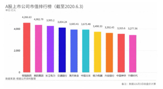 截至6月3日,寧德時(shí)代的總市值高達(dá)3277.56億元,在A股公司總市值排行榜中位列第21位。