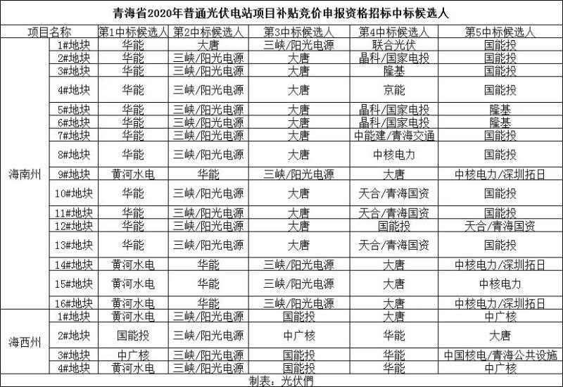 6月7日,青海省2020年普通光伏電站項(xiàng)目補(bǔ)貼競(jìng)價(jià)申報(bào)資格招標(biāo)中標(biāo)候選人公示。