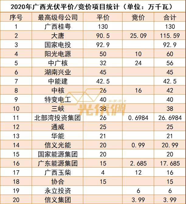 6月5日,廣西發(fā)改委官網(wǎng)發(fā)布了《關(guān)于2020年度平價(jià)風(fēng)電、競價(jià)和平價(jià)光伏項(xiàng)目競爭性配置評分結(jié)果的公示》,其中光伏競價(jià)項(xiàng)目49個(gè),裝機(jī)量1.14GW;光伏平價(jià)項(xiàng)目69個(gè),裝機(jī)量8.792GWW;風(fēng)電平價(jià)項(xiàng)目67個(gè),裝機(jī)量6.53GW。