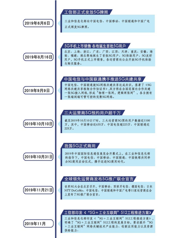 2019年6月6日,工業(yè)和信息化部向中國電信、中國移動、中國聯(lián)通、中國廣電發(fā)放5G牌照,我國正式邁入5G時代。在過去的一年中,得益于產(chǎn)業(yè)鏈各方的協(xié)同、努力,我國5G產(chǎn)業(yè)實現(xiàn)快速發(fā)展,5G網(wǎng)絡(luò)建設(shè)加快推進(jìn),5G技術(shù)創(chuàng)新持續(xù)開展,5G終端種類和數(shù)量不斷增長,5G應(yīng)用更是落地開花,助力傳統(tǒng)行業(yè)數(shù)字化轉(zhuǎn)型,改變我們的生產(chǎn)和生活方式。可以看到,5G賦能效應(yīng)日漸凸顯,為經(jīng)濟社會的高質(zhì)量發(fā)展注入新動能。