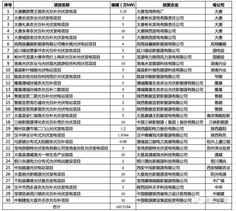 今日,陜西省能源局公布了《陜西省2020年度光伏發(fā)電國家補貼競價項目信息》,共78個項目,總規(guī)模為175.15萬kW。其中: