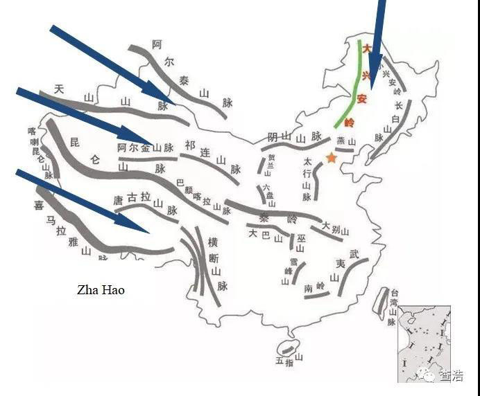 從上圖中,可以看出隨著空間范圍的擴(kuò)大,風(fēng)電的波動性會減小,空間范圍越大、風(fēng)電的整體波動性會越小,說明風(fēng)能資源具有一定的空間互補(bǔ)性和平滑效果。其實理解這個特性,通過下面一張圖(中國山脈分布圖)也可以有個大體判斷。
