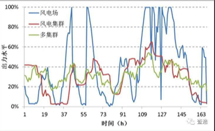 前述初步分析了單個新能源場站隨機(jī)波動大,但地理分布的多個新能源場站組成的風(fēng)電集群會降低出力波動性,而多個風(fēng)電集群的出力波動會進(jìn)一步降低。
