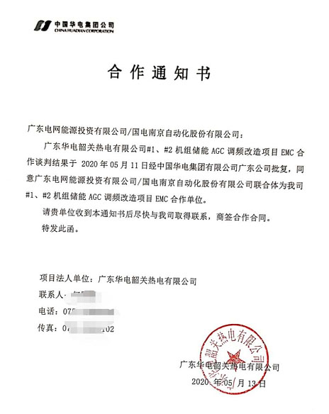近日,國電南自新能源科技有限公司收到廣東華電韶關(guān)熱電有限公司“儲(chǔ)能AGC輔助調(diào)頻項(xiàng)目”中標(biāo)通知書,為韶關(guān)熱電公司2X350MW機(jī)組提供10MW/10MWh全套儲(chǔ)能系統(tǒng)與設(shè)備。