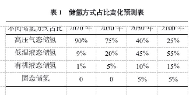 目前工業(yè)氫氣主要采用高壓氣態(tài)的方式儲存,由于成本的限制,液態(tài)儲存的方式使用較少,主要用于航空航天領(lǐng)域。但隨著技術(shù)的不斷成熟,預(yù)計 2050年液態(tài)儲氫將成為工業(yè)氫氣的主要儲存形式 (表 1)。
