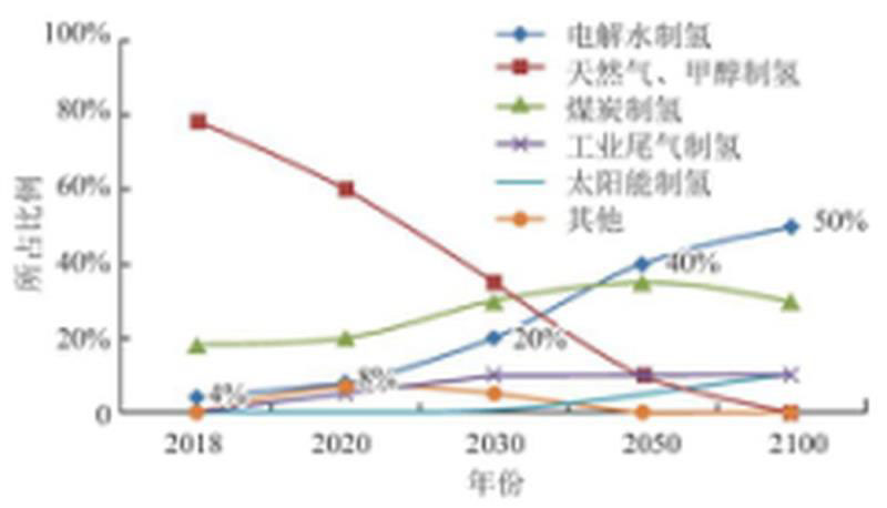 圖10 氫氣的主要來源趨勢預(yù)測圖