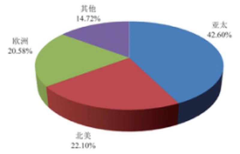 全球工業(yè)氫氣市場具有較強的地域性,已形成亞太、北美、歐洲三大區(qū)域版圖。化石資源是當(dāng)前主要的制氫原料,其中煤氣化制氫發(fā)展?jié)摿薮骩5]。