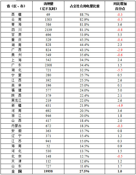 而從上圖的各省可再生能源消納占比來看看,西藏以88.7%的高占比獨占鰲頭,云南、青海、四川占比也超過80%。累計共有8?。▍^(qū))占比超過40%,其中,排在第五位的重慶市可再生能源電力消納占比為45.5%。