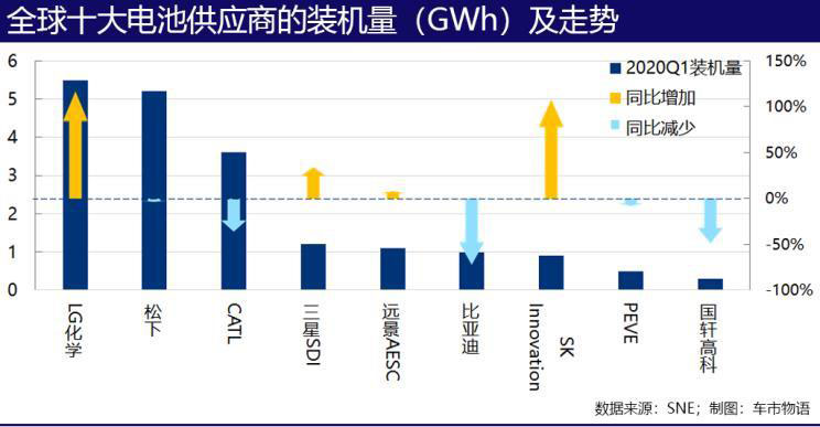 今年第一季度,全球動力電池裝機量同比下降了14.2%,中國電池商的裝機量下降了54.3%,LG化學(xué)和松下聯(lián)手將寧德時代趕下了第一的寶座。變天了!