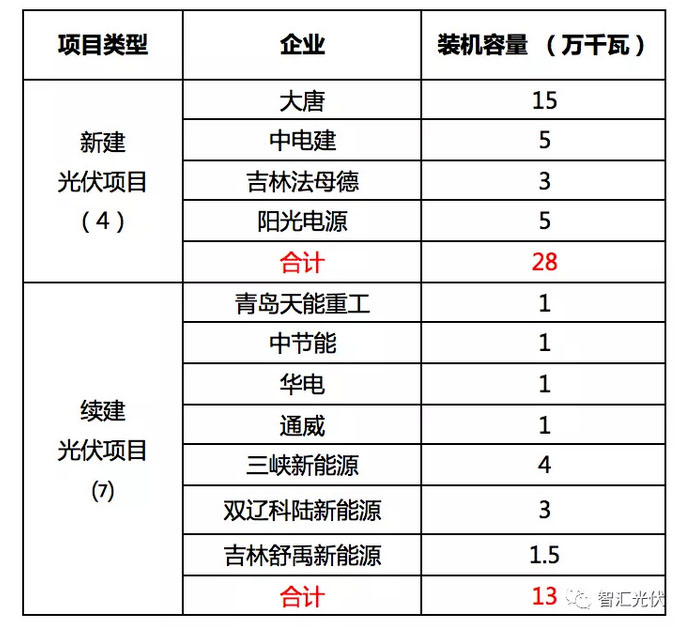 新建光伏項(xiàng)目的規(guī)模主要有大唐、陽(yáng)光電源、中電建獲得。