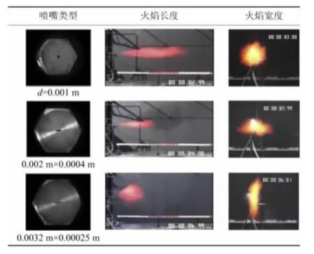 表1不同噴嘴類型下的氫氣噴射火試驗(yàn)