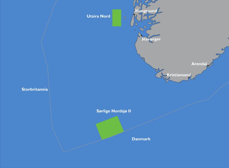 兩塊區(qū)域一南一北,北邊的Utsira Nord海域靠近豪格松港(Haugesund),南面的S?rlige Nordsj? II 海域緊靠挪威和丹麥在北海海域的邊界接壤區(qū)域。據(jù)透露,兩者的申請將于2021年1月1日啟動,對可開發(fā)風能的數(shù)量也設置了限制。