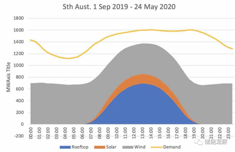 時段的選取是隨意的。我們選中這一時段是因為它最近,此外,南澳大利亞州有61%的可變可再生能源(VRE),所以這是最接近澳大利亞未來發(fā)展的時段。