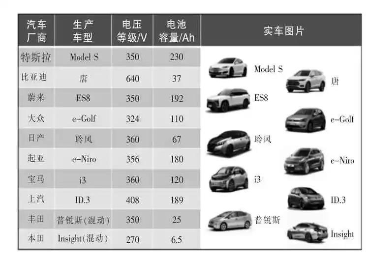 圖4 市場(chǎng)主流電動(dòng)汽車(chē)儲(chǔ)能系統(tǒng)技術(shù)參數(shù)