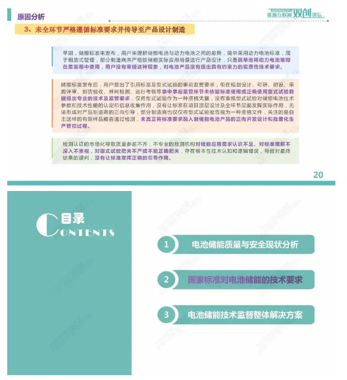 中國電科院電池儲能技術(shù)檢測部主任官亦標(biāo)認(rèn)為,電池儲能質(zhì)量與安全是儲能行業(yè)長期健康發(fā)展的立足之本,當(dāng)前儲能行業(yè)正處于關(guān)鍵的十字路口,對電化學(xué)儲能應(yīng)該實(shí)行全鏈條全環(huán)節(jié)閉環(huán)管理,嚴(yán)格執(zhí)行國標(biāo)標(biāo)準(zhǔn),以杜絕和價格戰(zhàn)如影隨形的質(zhì)量與安全隱患,來推動行業(yè)走向健康可持續(xù)發(fā)展之路。