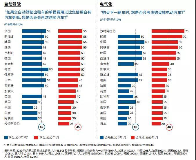 第六期《汽車行業(yè)顛覆性數(shù)據(jù)探測》報(bào)告發(fā)現(xiàn),盡管汽車行業(yè)整體低迷,但消費(fèi)者對(duì)電動(dòng)汽車和自動(dòng)駕駛汽車的興趣仍在增加。第七期報(bào)告發(fā)現(xiàn),該興趣在全球范圍內(nèi)持續(xù)維持在較高水平,其中55%的受訪者接受使用自動(dòng)駕駛出租車服務(wù),而40%的消費(fèi)者考慮購買電動(dòng)車作為下一輛車。