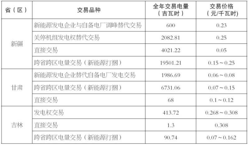 數(shù)據(jù)來(lái)源:新疆、甘肅和吉林電力交易中心