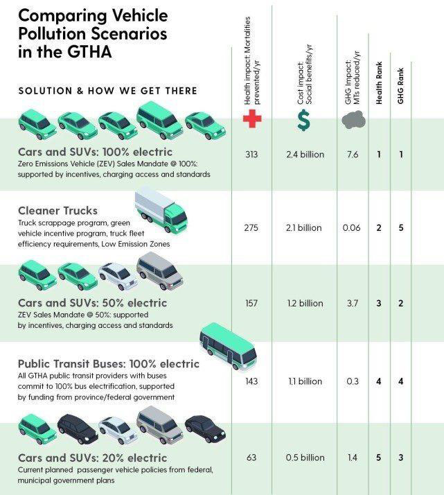 加拿大衛(wèi)生部估計(jì),大多倫多-哈密頓地區(qū)每年有3000人的過早死亡可歸咎于空氣污染?,旣惏脖硎荆骸叭绻憧紤]到個(gè)人健康層面,每一輛電動(dòng)車相較于汽油動(dòng)力汽車能帶來近1萬美元的社會(huì)效益。這些好處是每個(gè)人都可以享受到的,而不僅僅是購(gòu)買汽車的人?!?