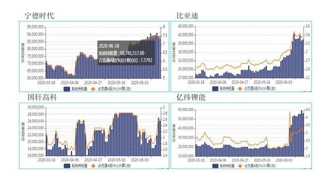 圖表4 磷酸鐵鋰產(chǎn)業(yè)鏈龍頭公司北上資金流動統(tǒng)計(3月18至6月18日)