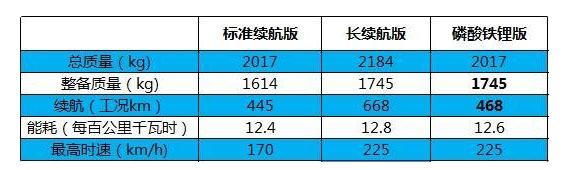 圖表1 各型Model 3新能對比