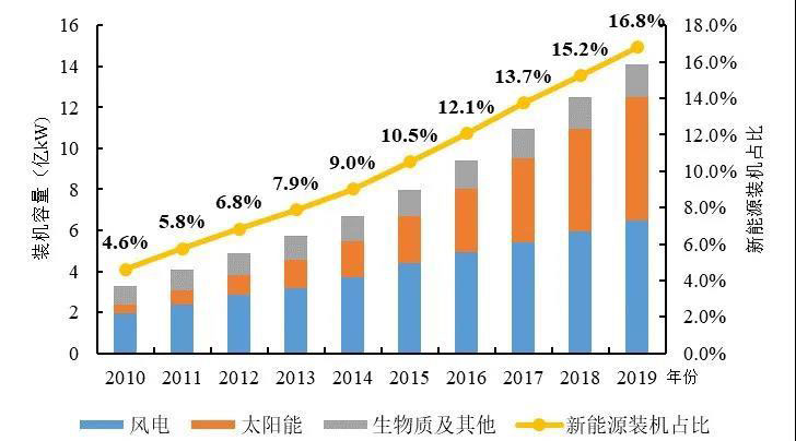 圖1 2010-2019年全球新能源發(fā)電裝機(jī)容量及占比