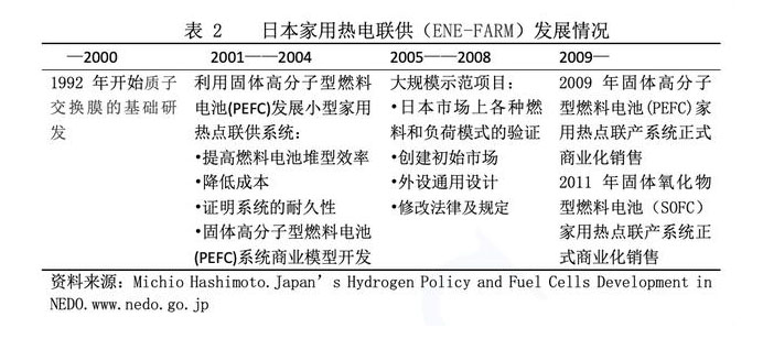 ENE-FARM是日本氫能在居民住宅中應(yīng)用的嘗試,通過(guò)將氫氣注入燃料電池中發(fā)電,同時(shí)用發(fā)電時(shí)產(chǎn)生的熱能來(lái)供應(yīng)暖氣和熱水,形成微型熱電聯(lián)供系統(tǒng)。目前主要有固體高分子型燃料電池(PEFC)和固體氧化物型燃料電池(SOFC)兩種類型,生產(chǎn)700瓦和1000瓦發(fā)電量的產(chǎn)品,能夠滿足部分電力需求和全部的熱水需求。早在1992年日本就開始了針對(duì)燃料電池的質(zhì)子交換膜進(jìn)行基礎(chǔ)研發(fā),探索氫能在住宅中的應(yīng)用。2001年開始進(jìn)行小規(guī)模固體高分子型燃料電池(PEFC)的研發(fā)和示范,2009年,固體高分子型燃料電池(PEFC)熱電聯(lián)供系統(tǒng)正式上市銷售,2011年固體氧化物型燃料電池(SOFC)熱電聯(lián)產(chǎn)系統(tǒng)也上市銷售。