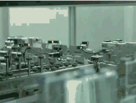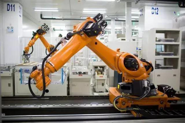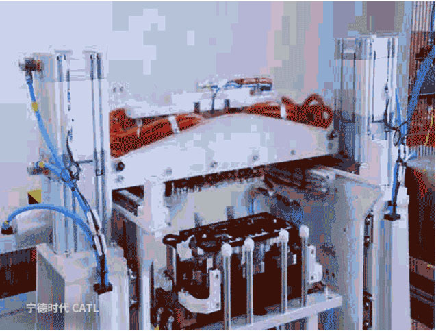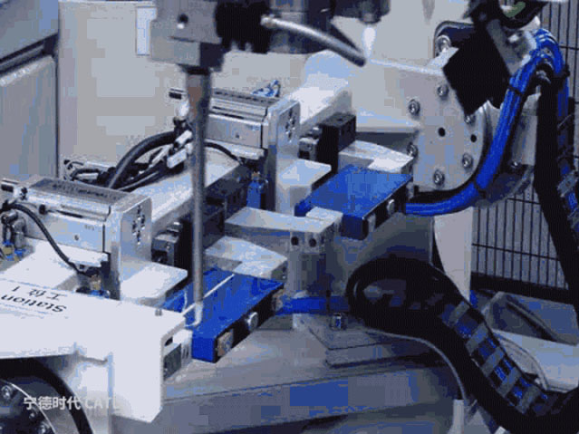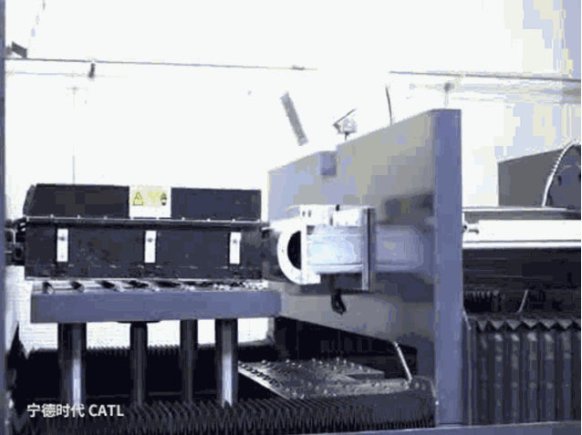 將電芯傳送到指定位置,機械手自動抓取送入模組裝配線。在寧德時代的車間內(nèi)從自動搬運材料到為設備喂料100%實現(xiàn)了自動化。