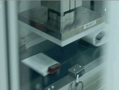 在這里,用模切機模切形成電芯的導電極耳。極耳是電池頭上耳朵,通俗地說就是電池正負極的耳朵在進行充放電時的連接點。然后,通過切刀對極片進行分切。