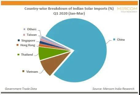 在2019-20財年,印度從中國的太陽能進口占77.5%,其次是越南(8.4%),泰國(7.2%),新加坡和中國香港(分別為1.9%)。在2018-19財年,中國占78.4%,而越南和泰國分別占4.3%和2.5%。