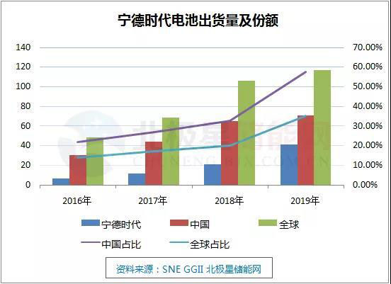 自2011年曾毓群等ATL高管攜原動力電池部門獨立,創(chuàng)辦寧德時代新能源科技有限公司CATL,短短六年時間裝機量排名超越比亞迪,并于2018 年在深交所創(chuàng)業(yè)板上市。直到2019年裝機32.5GWh、連續(xù)第三年位居全球動力電池裝機之首,電池系統(tǒng)在國內市占率約57.7%、國際市占率約35%以上,寧德時代的版圖仍在不斷擴張。