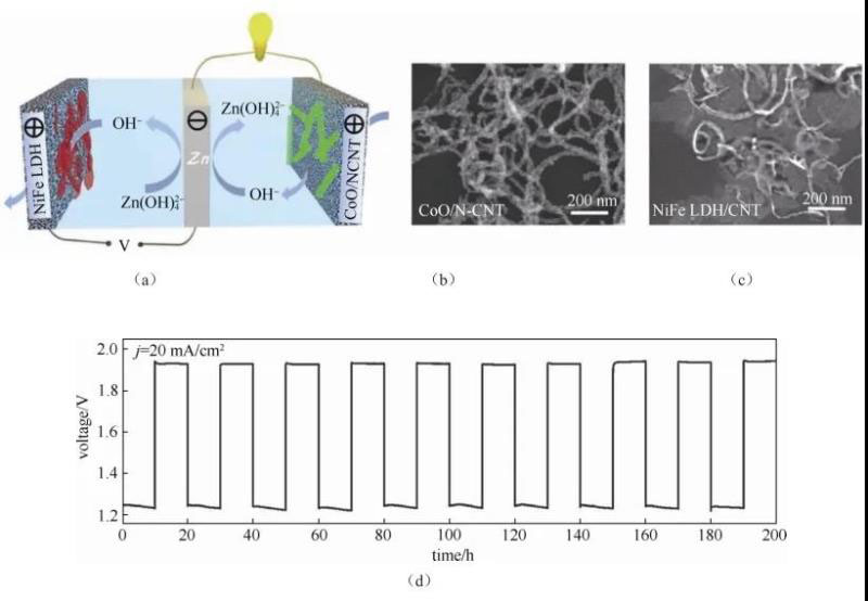 圖7 負(fù)載Ag-Cu催化劑的泡沫鎳雙功能電極在電化學(xué)可充電鋅-空氣電池中的應(yīng)用