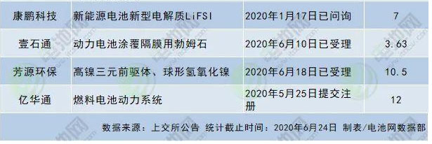 除了已上市的7家企業(yè),科創(chuàng)板IPO在途的電池新能源產(chǎn)業(yè)鏈企業(yè)還有12家:電池企業(yè)孚能科技(注冊生效)、天能股份(已問詢)、派能科技(已受理)、博力威(已受理);設(shè)備生產(chǎn)商先惠技術(shù)(提交注冊)、科威爾(已問詢)、海目星(上市委會議通過);電池材料生產(chǎn)商長遠(yuǎn)鋰科(已問詢)、康鵬科技(已問詢)、壹石通(已受理)、芳源環(huán)保(已受理);燃料電池動力系統(tǒng)生產(chǎn)商億華通(提交注冊)等。