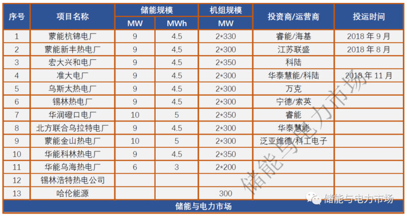 附:蒙西儲能聯(lián)合火電機組調(diào)頻項目列表。