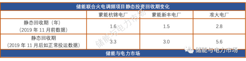 目前蒙西電網(wǎng)處于投運狀態(tài)的儲能聯(lián)合火電調(diào)頻項目為 :蒙能電廠、新豐電廠、準大電廠。他們的收益情況如下表。