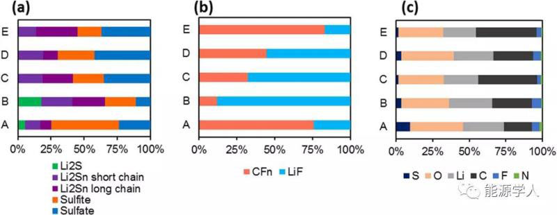 與1M和3M號(hào)電解質(zhì)相比,低濃度電解質(zhì)的含氮化合物比含氮有機(jī)化合物多。這可能是由于在低濃度電解質(zhì)中LiNO3的相對(duì)比例較高。只有0.1M LiTFSI同時(shí)具有CF2和CF3鍵,而所有電解質(zhì)都顯示出C–C、C–H、C–O和C=O鍵,這與二氧環(huán)烷溶劑的分解和聚合一致。