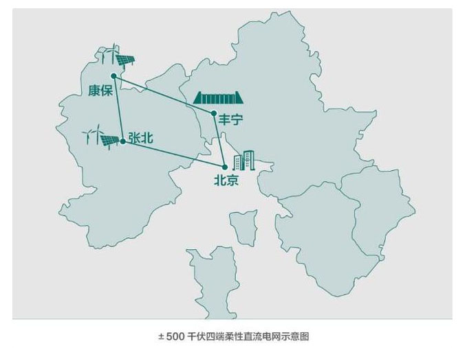 6月25日,±500千伏張北柔性直流電網(wǎng)試驗(yàn)示范工程四端帶電組網(wǎng)成功。張北地區(qū)的清潔能源發(fā)電成功接入北京電網(wǎng),送至北京冬奧會(huì)的各個(gè)場館。