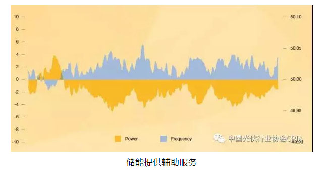 輔助服務(wù)使得能量系統(tǒng)與變量共存時(shí)間高達(dá)一小時(shí)。為了提供這樣的服務(wù),發(fā)電機(jī)需要快速響應(yīng)信號(hào),校正波動(dòng)中的頻率。光伏+儲(chǔ)能系統(tǒng)的靈活性能夠?yàn)檩旊娤到y(tǒng)運(yùn)營(yíng)商(TSO)和配電系統(tǒng)運(yùn)營(yíng)商(DSO)提供更快、更精確的服務(wù)。