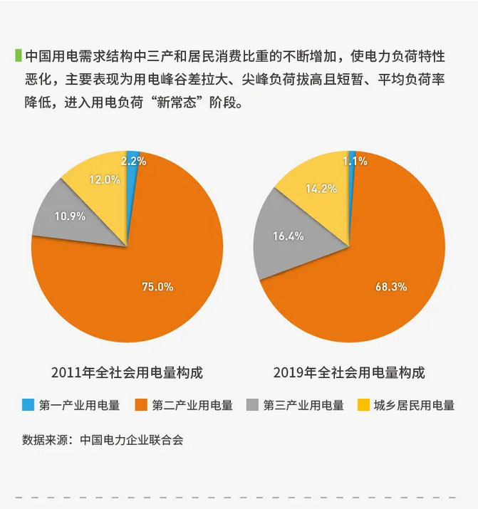 “新冠疫情沖擊中國(guó)用電需求,雖然經(jīng)濟(jì)總體呈復(fù)蘇態(tài)勢(shì),但短期用電需求仍將持續(xù)走低?!薄秷?bào)告》第一作者袁家海教授說(shuō),“全球疫情導(dǎo)致的出口受阻和制造業(yè)產(chǎn)能下滑,會(huì)拉低基礎(chǔ)用電負(fù)荷水平,而依靠‘新基建’拉動(dòng)電力需求又存在滯后性;同時(shí),服務(wù)業(yè)用電需求的回暖、數(shù)字經(jīng)濟(jì)的發(fā)展和城鄉(xiāng)居民用電量的增長(zhǎng)都會(huì)繼續(xù)拉高用電峰荷。因而,“十四五”期間中國(guó)大概率會(huì)出現(xiàn)負(fù)荷峰谷差進(jìn)一步拉大的情況。”