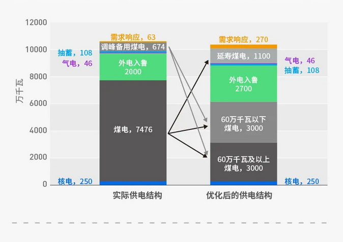 《報(bào)告》指出,“十四五”期間如果為滿(mǎn)足短時(shí)尖峰負(fù)荷缺口,而大舉新建耗資數(shù)十億的燃煤電廠(chǎng),是極不經(jīng)濟(jì)的。從中國(guó)整體尖峰負(fù)荷需求來(lái)看,若未來(lái)仍存在相當(dāng)于2018年的電力缺口規(guī)模,即各省電力缺口總和2454萬(wàn)千瓦,建議選擇“需求響應(yīng)+延壽煤電”的最優(yōu)供應(yīng)方式來(lái)滿(mǎn)足尖峰負(fù)荷。而如果依靠新建更多煤電項(xiàng)目來(lái)填補(bǔ)短期缺口,將造成約每年70.2億元的投資浪費(fèi);按照煤電機(jī)組全壽命周期(30年)的時(shí)間范圍看,共計(jì)將產(chǎn)生2106億元的投資浪費(fèi)。