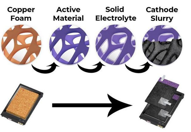 保持住電池負(fù)電荷的陽(yáng)極是由泡沫銅制成的,上面還涂有所需的活性材料。