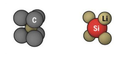 作為陽(yáng)極,硅比石墨好用的原因在于需要4個(gè)碳原子才能hold住鋰,而1個(gè)硅原子就能hold住4個(gè)鋰離子 。這是一次重大升級(jí)……使得硅的性能比石墨強(qiáng)了3倍。