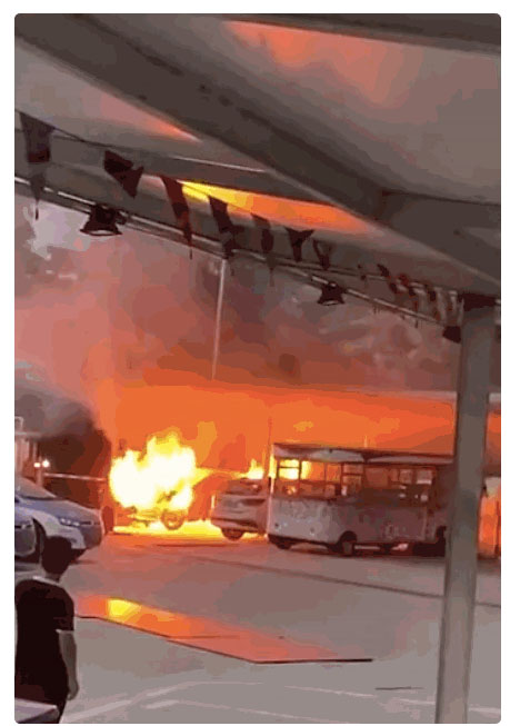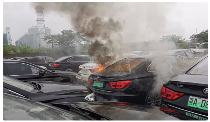 無獨(dú)有偶,昨天杭州拱墅區(qū)康橋街道平安橋村委會(huì)旁的停車場內(nèi)也發(fā)生了一起新能源汽車著火的事情。